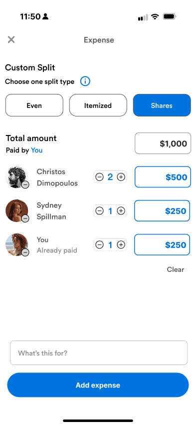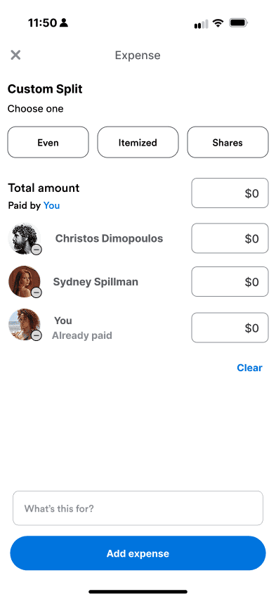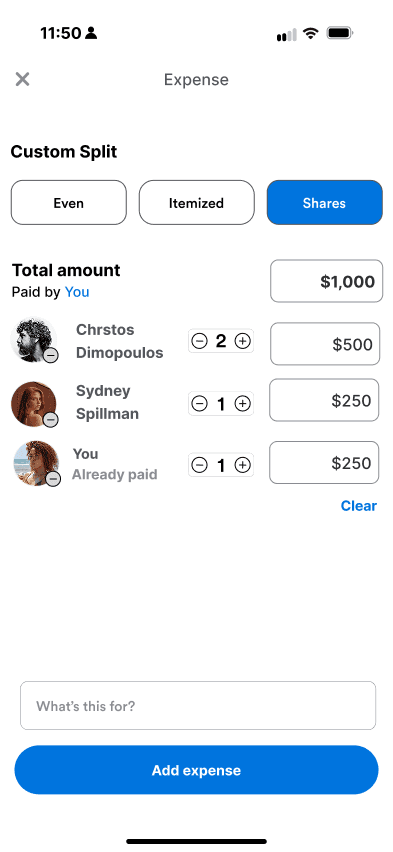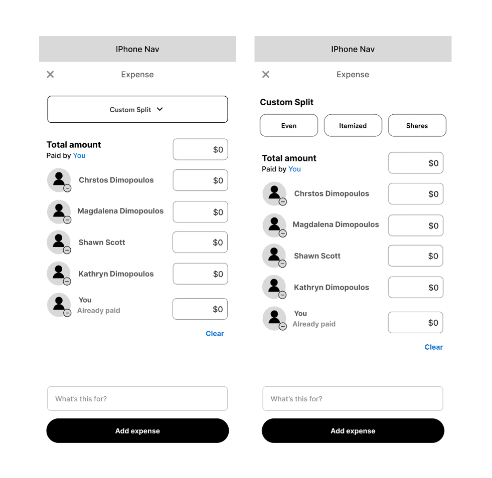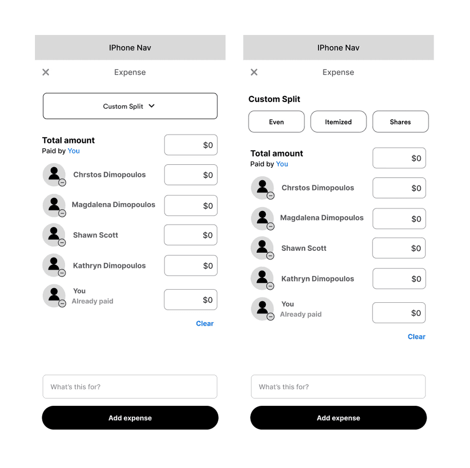 “Shares” made sense for rent or family expenses, while “Itemized” worked for dinners — but those distinctions weren’t obvious.