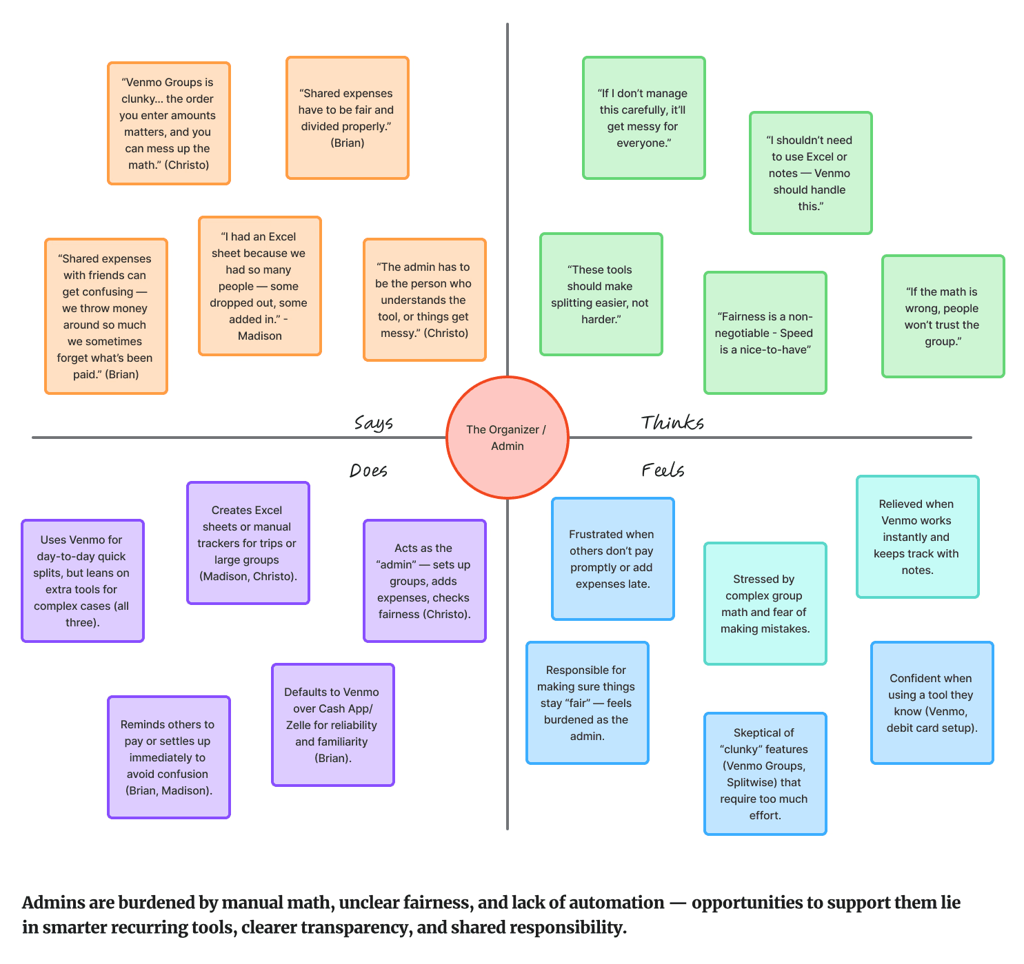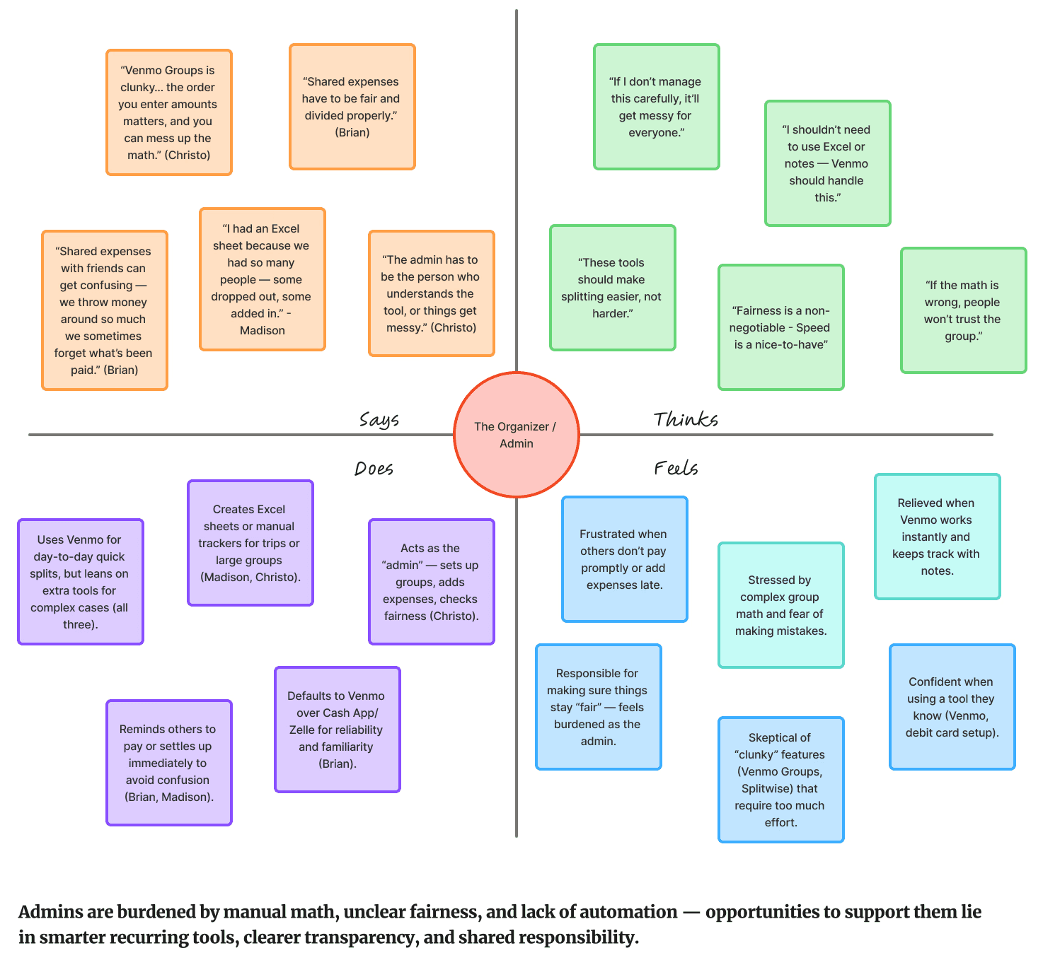 Empathy Map created based on the group expense 'Organizer / Admin' role