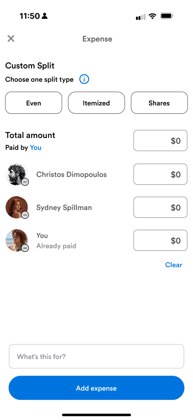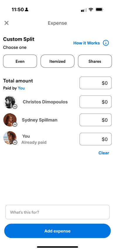 Venmo technically allowed uneven splits, but only through manual entry with little guidance — a limitation many users didn’t even realize existed.