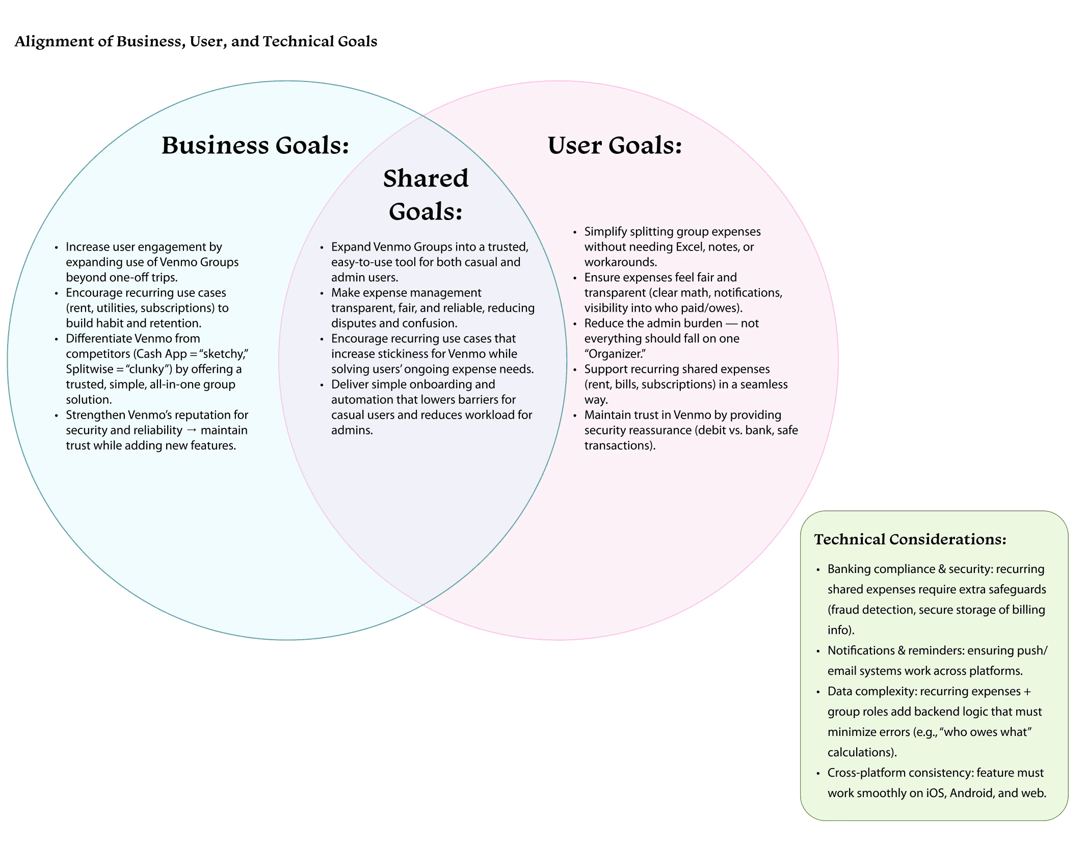 These strengths highlight an opportunity for Venmo to support complex group payments without sending users elsewhere.